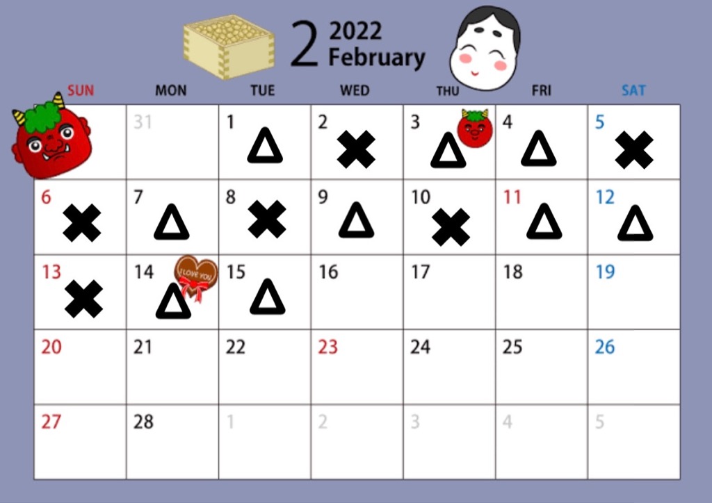 2/2 (水) ×