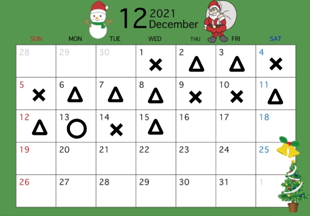 12/25 (土) △