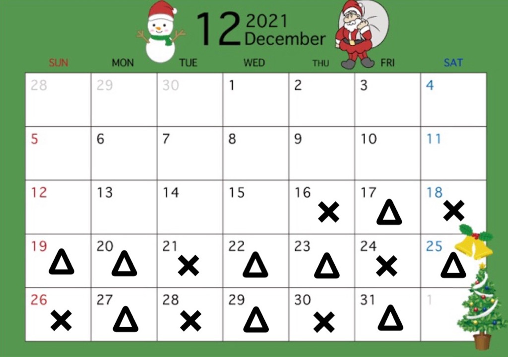 🔶12/16〜12/31予約状況